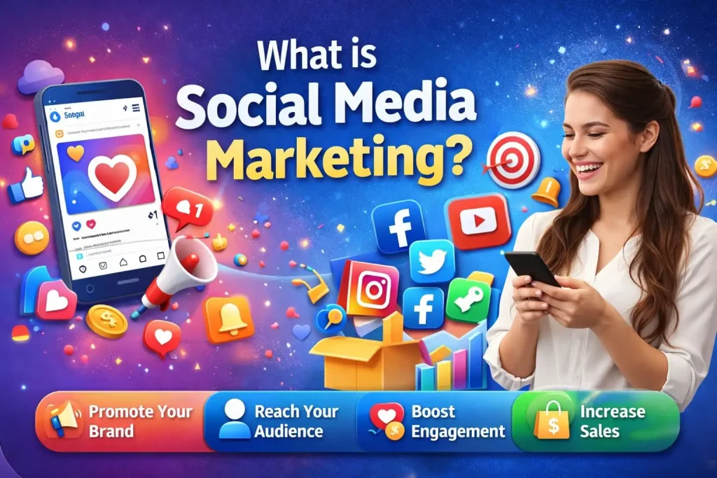 It is the process of using social media platforms and applications to promote a brand, product or service. It includes created and shared content, runs ad paid, engaged with users and followers, analyzed performance and optimized strategies to achieve goals.